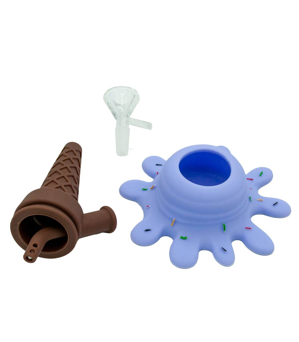 Con un diseño creativo, este bong simula un helado derretido sobre la mesa, ofreciendo un aspecto visualmente llamativo y único.
