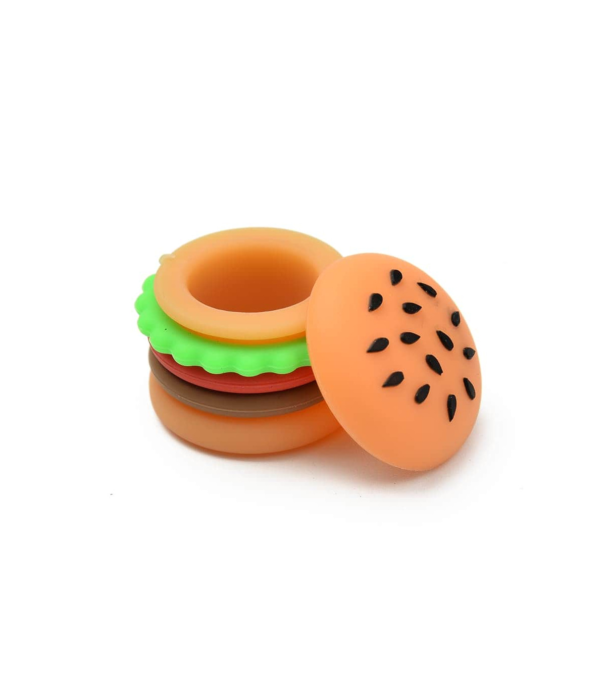 Presentamos un producto único para los amantes de los accesorios originales: el bote de silicona con forma de hamburguesa. Ideal para guardar extracciones y mantenerlas alejadas de la luz, preservando todas sus propiedades. Su diseño innovador no incluye patatas ni refresco, pero sí un espacio amplio para almacenar lo esencial.
