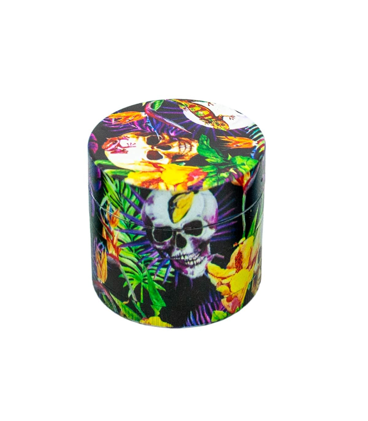 Este grinder es una excelente opción para grow shops y tiendas especializadas, ofreciendo un producto atractivo y práctico a sus clientes. Amplíe su gama de grinders con este modelo de calaveras y flores, disponible en 4 variantes distintas.