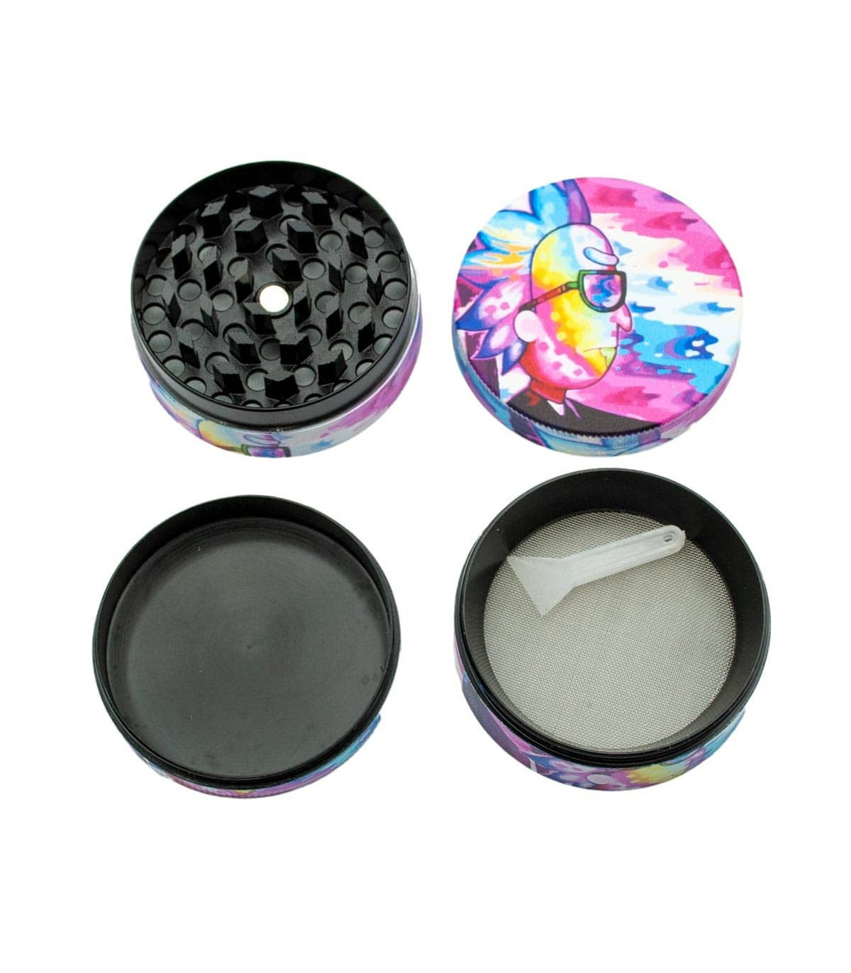 Para mayoristas en busca de productos novedosos y atractivos, presentamos nuestro grinder de 4 partes con polinizador, adornado con divertidas y alocadas imágenes de Rick y Morty. Este grinder es perfecto para una experiencia única en la preparación de hierbas.